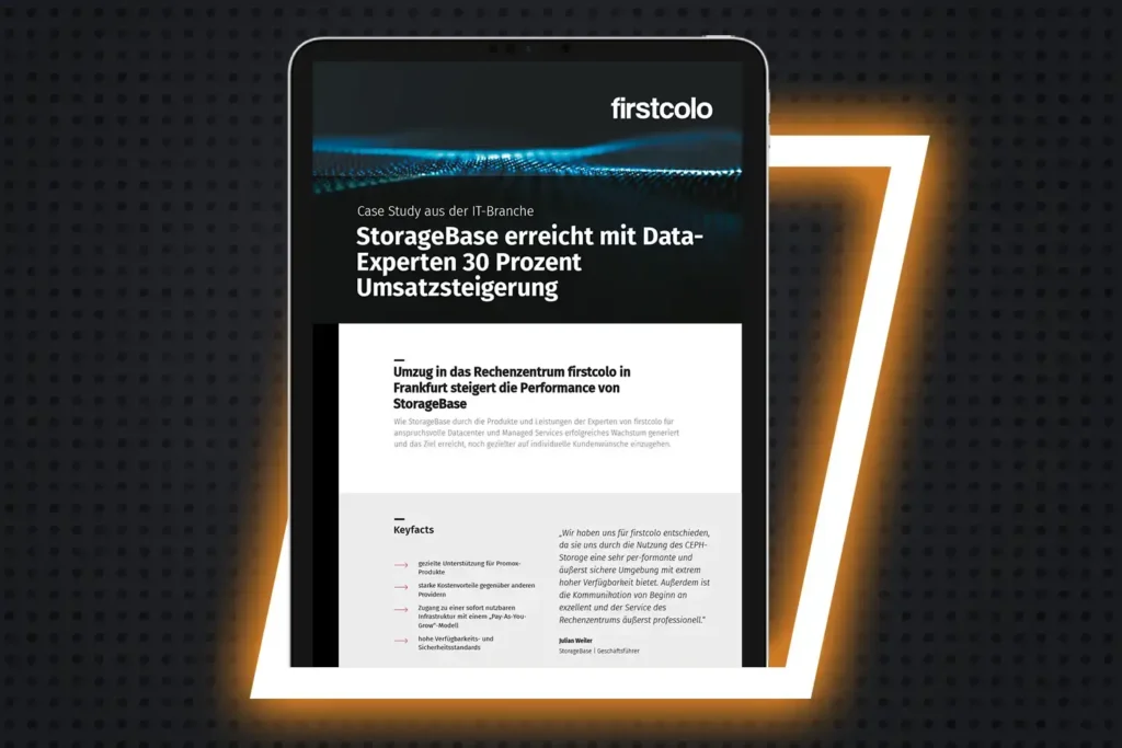 Erfahren Sie, wie StorageBase durch den Umzug in ein leistungsstarkes Frankfurter Rechenzentrum seine CEPH-Storage-Performance steigert – und damit neue Großkunden gewinnt und den Umsatz um 30 % erhöht.