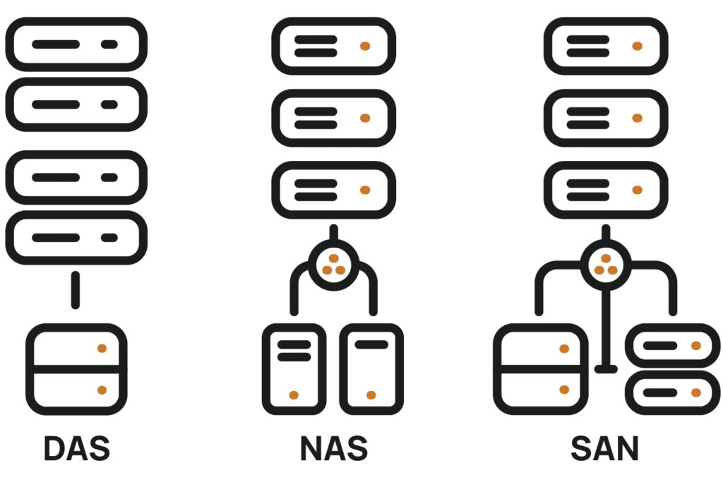 DAS, NAS, and SAN Compared